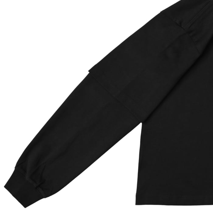 半袖と長袖を重ねたような「フェイクレイヤード」仕様。一枚着用するだけで、トレンド感のあるコーディネートが即座に完成。ワイドパンツからスリムなチノパンまで相性が良く、ストリートからアメカジまで幅広いスタイリングを楽しめます。